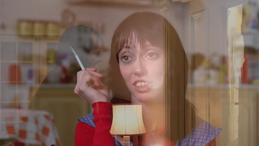 - “Because the sky is blue/It makes me cry/Because the sky is blue” – All throughout this Wendy is shrieking out cries to herself, and to Jack to stop. Also, I suppose we can note that both Wendys are wearing predominantly blue.
