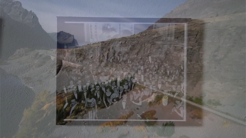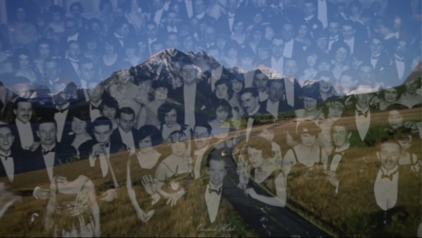 - “Here come ol’ flat top, he come/groovin’ up slowly” – Lennon is mocking himself here (“ol’ flat top”), but in RR (Redrum Road) we’ve got a shot of the wide, flat Saint Mary Lake, and we are grooving up slowly to Jack in his VW. Also, Jack in the photo at the end, is groovin’ down slowly into the image. Also, the mountain range to the right of the image in the third shot (two after this one) is called East Flattop Mountain. East Flattop is still off to the right here, but it’s behind Goat Mountain.
