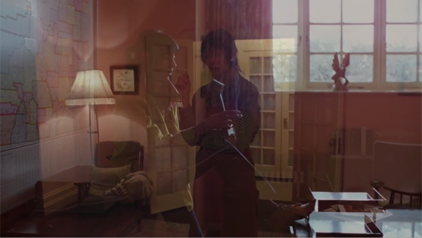 - “Hold you in his armchair, you can feel his disease” – Shot of a couple armchairs in the Torrance apartment at the end of this line, one with Wendy’s indigenous-style sweater slumped over an arm.