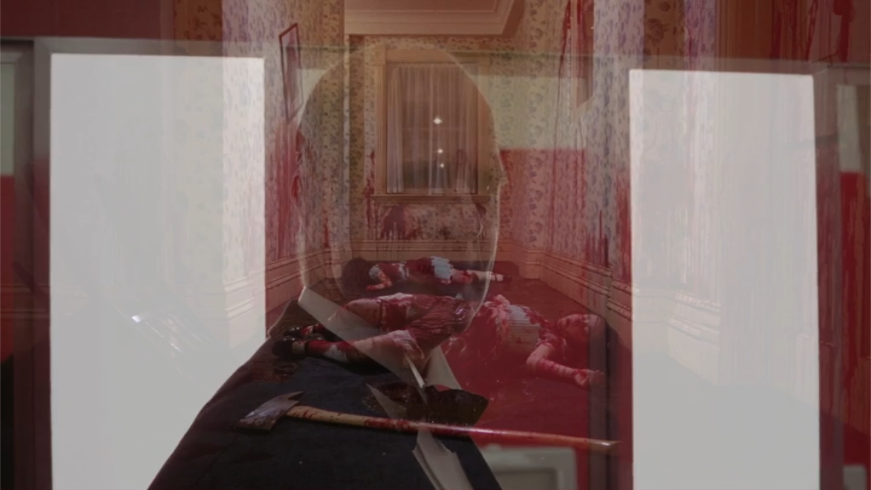 - “Got to be good lookin’ cuz he’s so hard to see” – On “look” and “see” we get the two shots of the murdered, bloody girls (virtually indistinguishable, below). Grady also appears to have blood coming out of his eyes in this moment. Cuz he looks good.