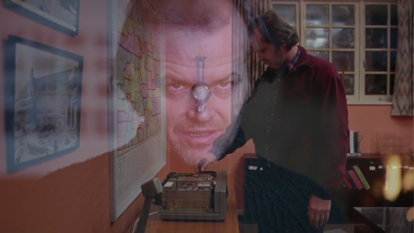- “Come together/Right now” – I wasn’t sure this version was going to have a good “Right now” moment, but here it is: there’s numerous instances of objects shifting locations, or disappearing altogether in the film, and in this shot, the table and chair behind Jack’s left disappear for this one moment. They’re in every other applicable shot. Well, what I’ve noticed from analyzing the vanishing objects is that their vanishment tends to reveal something in the spot where they were. And what’s revealed here is the snowcat that Hallorann will rent and use to come together with the Torrances. The overlay only lasts for 8 seconds, and the snowcat is only on screen for 13 seconds, so getting this, and the hundreds (maybe thousands) of other little overlays to work the way they do required quite a lot of coming together. “Right now.”