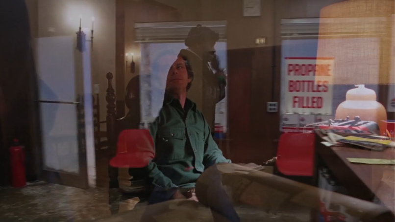 - There’s a couple nice cuts in the next “shoot me” section. The second “shoot me” happens when we cut to the below shot of mirror Wendy walking back, and this pairs with the moment SHELLEY DUVALL leaves the top of the screen in round 1. Round 2 features Wendy trying to get through to Tony/Danny and the bashful ranger.