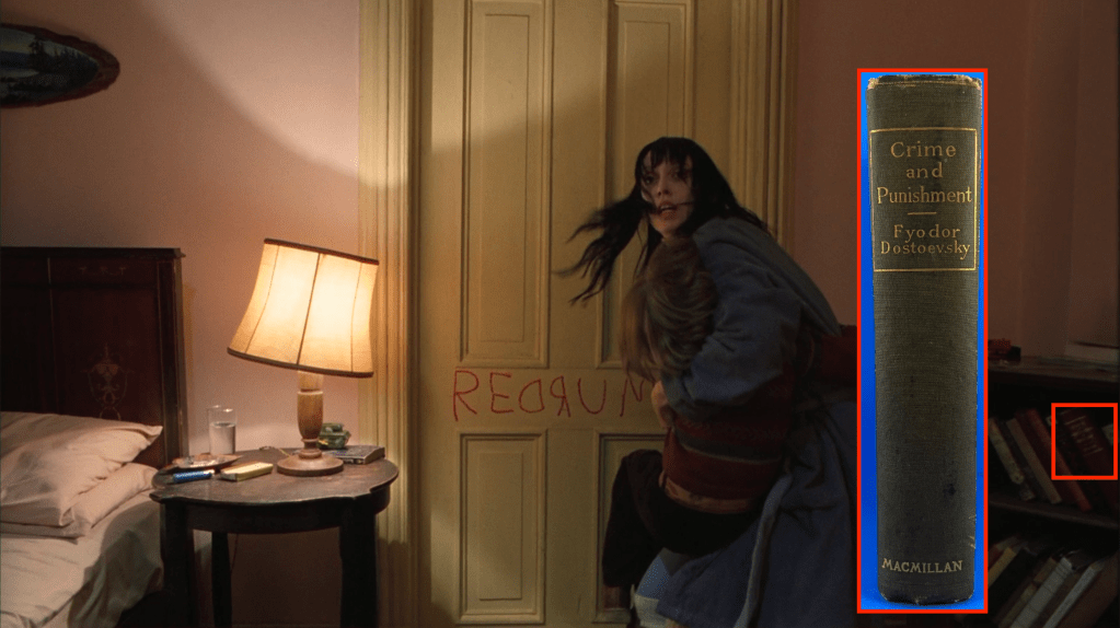 Fun fact: if we treat the backwards “DR” in the centre of Danny’s REDRUM for their Cyrillic value, the word would read as something like “Redyum”, which sounds an awful lot like Rodion in my book.