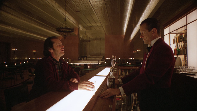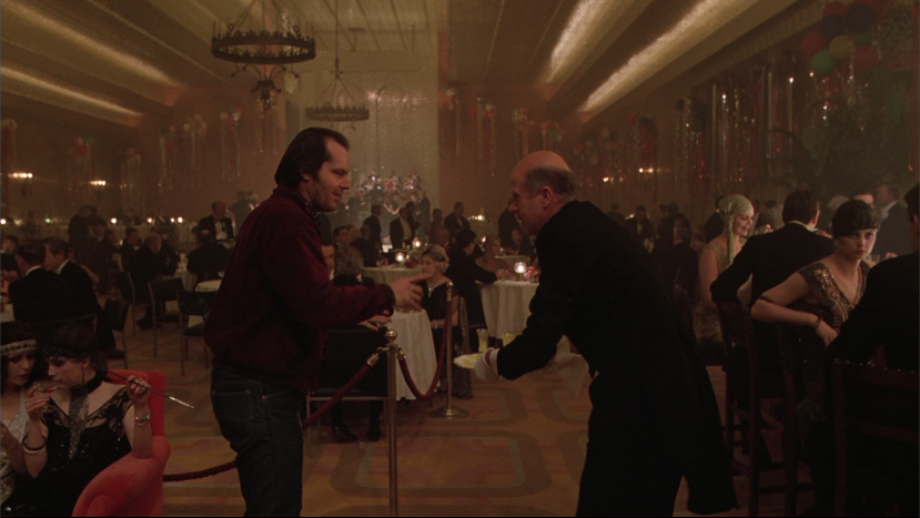 - When Jack first enters the ghost ball, the ghost maître d’ says “Good evening, Mr. Torrance” to which Jack replies with stately airs, “Good evening”. So Lloyd echoing this is a good way to reenforce the tone of the scene without having Lloyd echo or mirror Jack, which he will continue not to do.