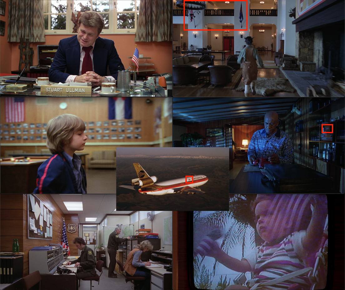 There’s 8 American flags and 2 Colorado State flags in the film. Both state flags hang to the right of the country flag. Maybe that’s tradition, but still.
