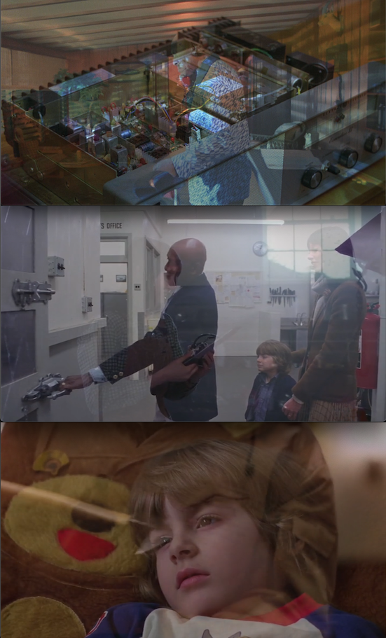 You have to be a little creative to arrive at this configuration. For one thing, the last three model shots are technically from the same basic sequence, but I was exhaustive with individual shots of the model, with one exception, which is the skeleton ball, but to be fair, the model is darkened out of visibility in that sequence (see below). I even wonder if that’s why the maze was darkened out (I’ve also wondered if it’s because Danny and Jack are in the (evolved) maze at this moment, and maps no longer factor).