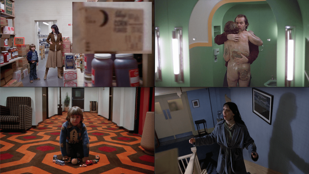 There’s the moon on the Corn Flakes box, the crescent shape of Danny’s toys combined with his Apollo 11 sweater, there’s two nude butts in the film from the 237 ghost and the BJ bear (this can be called “mooning” someone, in English), and there’s Wendy passing Moon and Cow, on her way to the BJ bear. You could also cite the MONDAY placard (and perhaps that entire sequence of action), since that day derives its name from “Moon Day”. There’s also a portrait of a man named Tatânga Mânî in the lobby, and Máni is the Norse moon goddess. So you can’t say that the Apollo 11 inclusion is an isolated bit of moon-related imagery. Whether or not the rest is enough to create a unity unto itself.