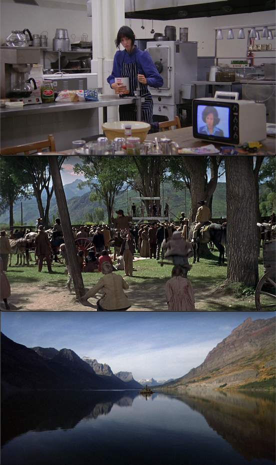 This was Warner Bros. first film to be shot in WarnerColor, so it’s interesting that in the two shots of the film playing behind Wendy, the one is in colour and the one is in B&W. Also, Hallorann has the same TV in Miami, showing colour.