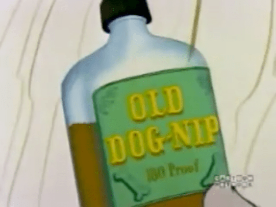 Butcher, having seen the self-animating sledgehammer takes out his bottle of OLD DOG-NIP (180 Proof), and suspects it might be the alcohol causing him to have these hallucinations.