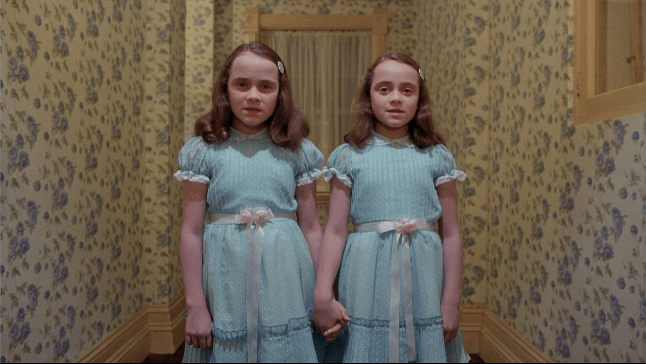 In Vivian Kubrick’s making of documentary, we see James Mason visit the set with his granddaughters(?), one of whom bears a mild resemblance to the Grady twins, the other of whom is dressed like them. If this was, indeed, a staged event as some have suggested, I think the purpose was simply to tie Kubrick’s Lolita (in which Mason starred as Humbert Humbert) to The Shining, and help nod along the notion of the The Shining‘s mirrorform structure.