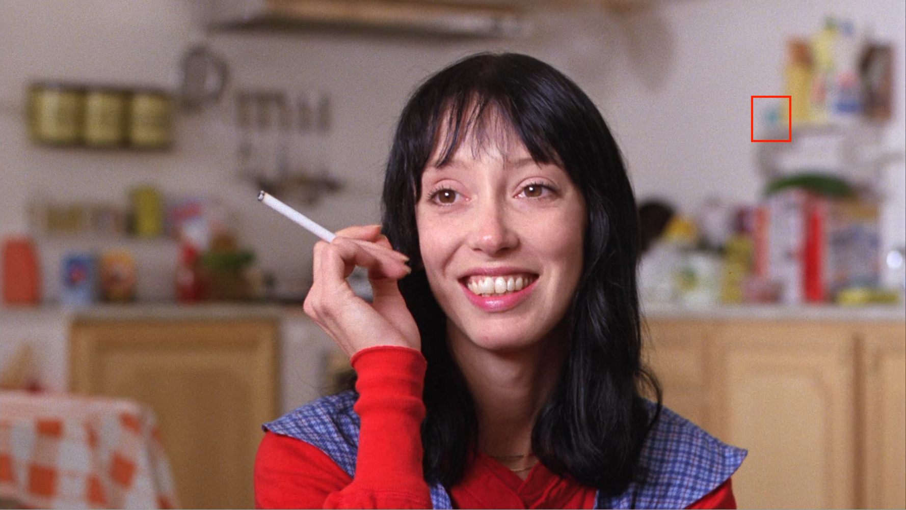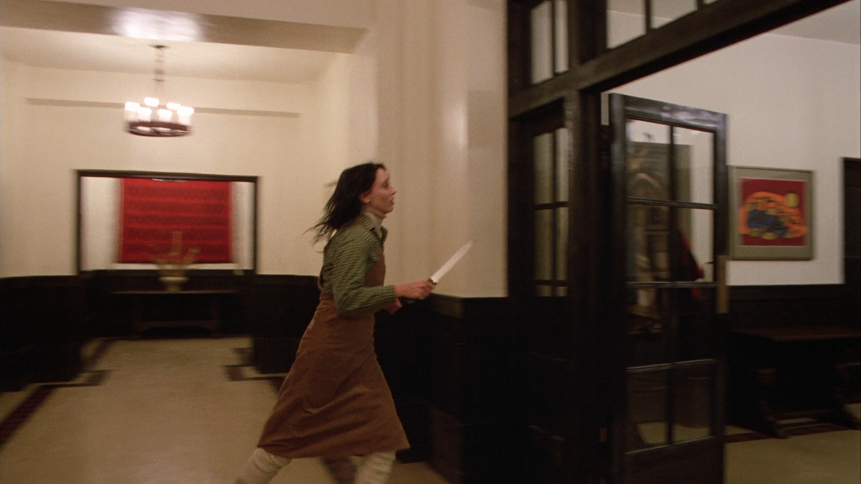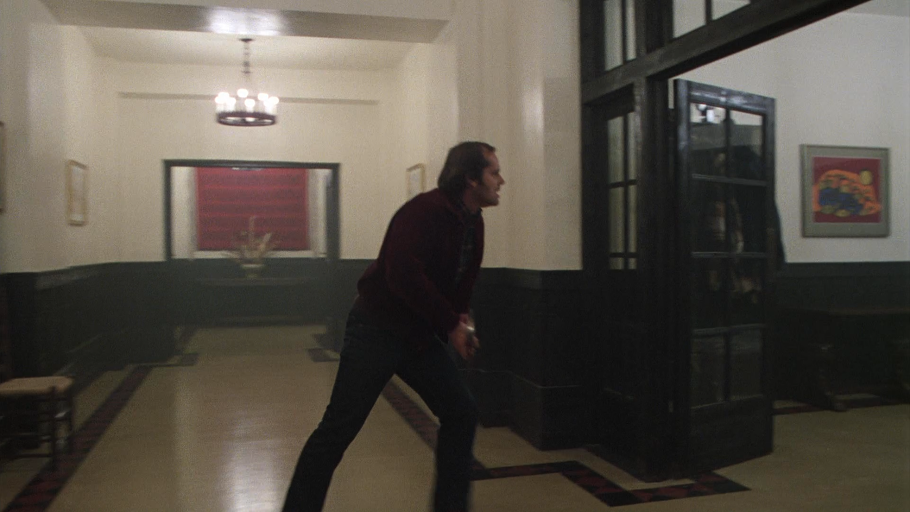 Then with the image of Jack stalking through the kitchen to get to the hiding spot to kill Hallorann, while passing the open pantry door, where Wendy had tried to hide Jack away.