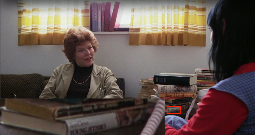 So, the big thing that drew me into looking into this was when I discovered that the ball of thread Ariadne gives to Theseus to find his way out of the labyrinth after slaying the minotaur was called a “clew”. That rung a huge bell, because I’d already found that a book in the Torrance living room was Young Jethro by Roy Clews. There’s barely any information on Clews or his book online, but the book in the film is probably among the top ten most easily identifiable art pieces in the film. It’s spine faces Wendy as she chats about Danny’s condition with the doctor.