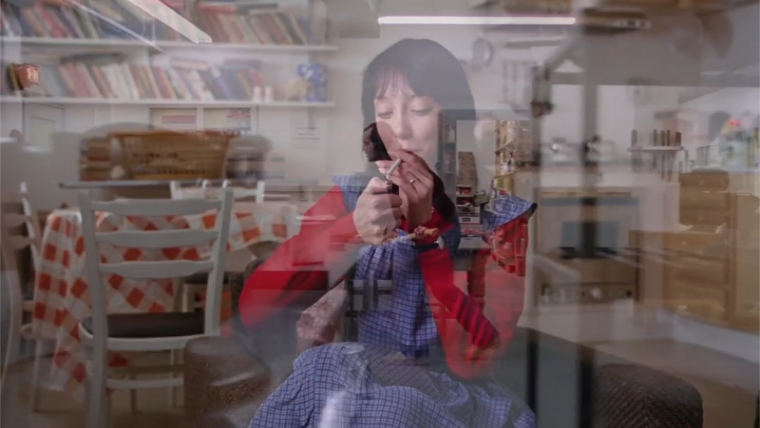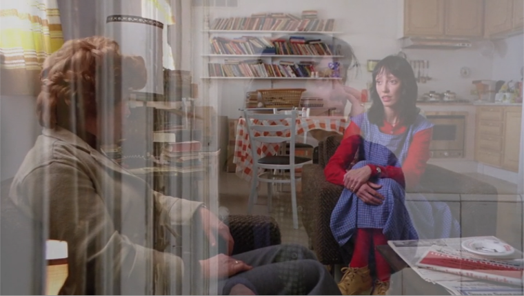 To the point of Wendy’s white supremacy ignorance: in both sequences where she’s got Joy Ivory floating behind her head she’s trying to put a happy face on something mildly distressing. First, her child’s fear of the hotel, then her husband’s abuse of her son. In the first instance, she’s speaking directly to the product of Jack’s abuse: Tony.