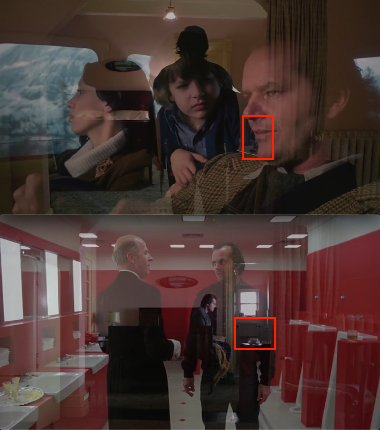 Going back to the mirrorform, note how the first shots of the clew behind Wendy’s head overlay with Danny beginning his escape from the labyrinth.