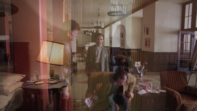 - While backward Jack is saying “Come out, come out, wherever you are!” he’s walking by a box of Jumbo Tiddley Winks on the coffee table. The game of Tiddlywinks contains a shot called the John Lennon Memorial Shot, which I can’t find predating Lennon’s murder, but it seems likely by the name that it would’ve come after. That said, the shot might’ve been called the John Lennon Shot before the murder. I can’t find how the name came to be (the original French name meant “Flea Game” and Lennon was in the Beatles? is that the joke?). Anyway, both this instance of Jack passing the game, and the mirrorform instance occur while a Lennon track is playing. Here it’s this, and on the other side, Because has just begun to play.