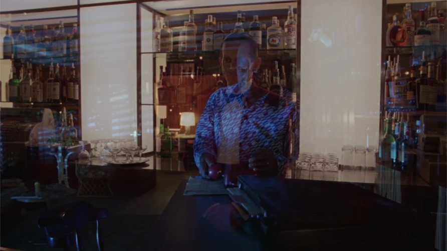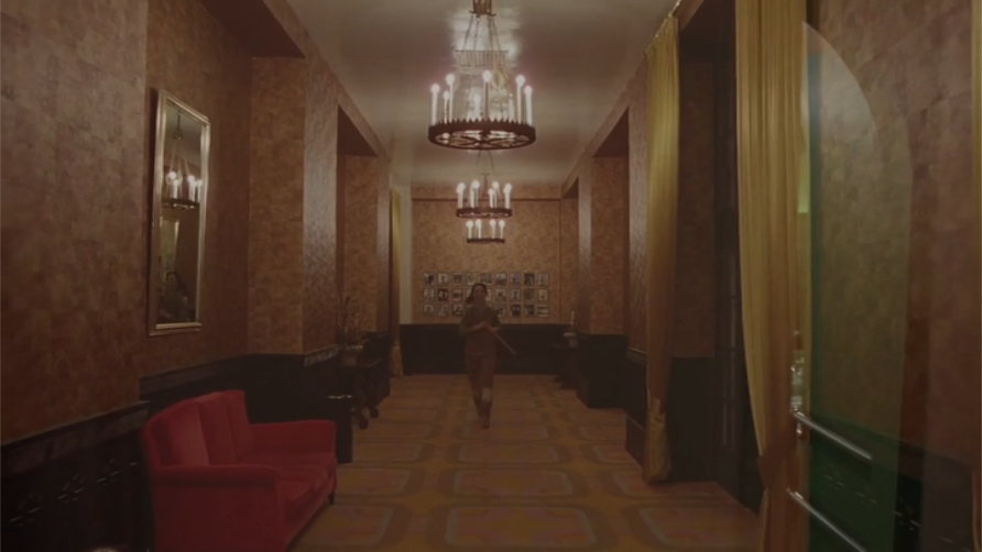 - “She’s so…heavy!” – This line starts immediately after the last shot, and this shot is for “heavy”. So the ghost transforms into her younger self in the pregnant pause between lyrics. And you’ll recall that the last time (round 1) we heard this was when backward Danny was finishing writing out REDRUM, so we’ve got the RUM-Jack Daniels connection there.