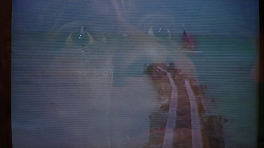 - In keeping with the intense flood imagery from the first round, this time we’ve got a sense of prophecy (Jack says “Which room was it?” and through the mirrorform the image of 237 appears during a Danny-shine), we’ve got Hallorann’s shine-receiver face, playing over the Channel 10 Miami Newswatch report which opens with a bevy of nautical imagery, and finally, while Glenn Rinker is detailing the awesome winter storms that are shutting down civilization by his description, we’ve got that graphic in the background of a trident (Neptune) coming out of a rainbow (Noah’s Ark) above a hurricane (a hurricane). I don’t know, maybe that graphic was typical of the era, but that weird sideways rainbow/hurricane just jumps out at me. Oh, also, Hallorann’s lamps have fish engravings on them. So that seems like a thing. And the painting Danny is seeing inside 237 here is Dog, Boy, and St. John River, a piece concerned with an ominous body of water.