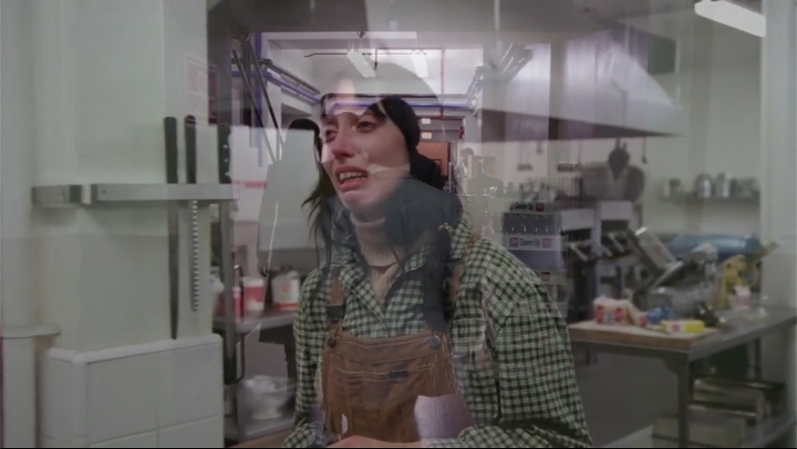 - “She’s so” – There’s a cool overlay of actual mirrors in the multi-mirrorform, here. So, in round 3 backward Hallorann and Wendy are coming out of a deepfreeze on the left (C3) despite the fact that they entered the deepfreeze on the right (C4) (meanwhile there’s a mirror hanging across the hall, right next to where they headed into C4). In round 2, Jack is talking to his reflection (Lloyd) and backward Jack is seeing the nude ghost for the first time (recall that he walks forward through 237 into the bathroom, and walks backward the whole way out; also that the bathroom is covered in mirrors). In round 1, backward Danny is just finishing writing REDRUM, the mirror word.
