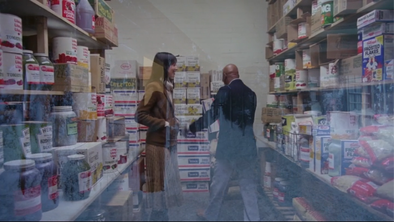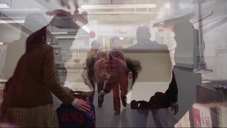 - After the screams of “Heavy!” the music transitions into a smoother, more placid vibe, and the pan shot that tracks backward Wendy and Hallorann here is exactly like the one that happens in round 1, panning the other direction across the lobby. That sequence is overlaid with the shot of backward Wendy seeing MURDER in the mirror, and this scene is overlaid with Wendy finding the murdered snowcat. Note how the part Jack cut out of the machine floats in or very near Hallorann’s form throughout his whole speech, here.