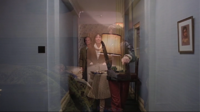 - At the exact moment Ullman hails Dick’s arrival, breaking up the band, there are two other similar instances in the other rounds. In round 1 the backwards action is Tony/Danny doing the REDRUM walk, which is interrupted on this very second by the sequence of Hallorann driving the snowcat through the snowy mountains (this also happens to be the moment forward Wendy steps into the spot backwards Danny was stepping back to). And in round 2 this is the exact introduction of the middle scene in the movie, which goes from Jack asking “Which room was it?” to backward Dick’s shine-receiver face overlaying an off TV screen, about to blast into life. In both these instances, Dick is cutting off a scene showing Jack, Wendy and Danny on screen at the same time. I’ll include the exact moments below so you can see.