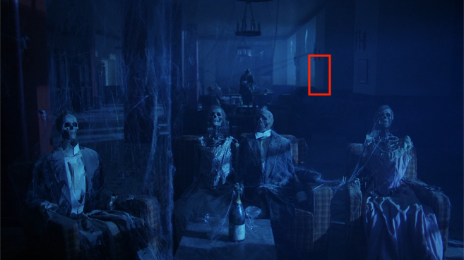 Appears finally during the skeleton ball, to the right of the final skeleton group. It should be a different Krieghoff beside the skeletons. It probably switched because Hallorann’s corpse disappears in this scene, and the St. Maurice of Catholic mythology was a black man.