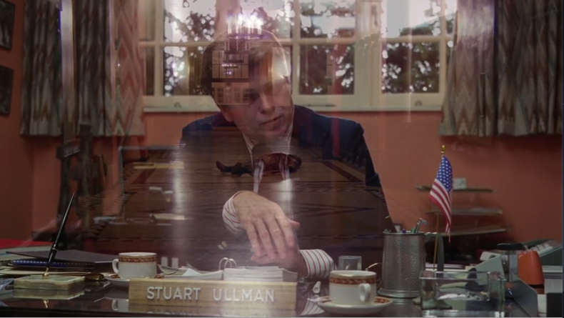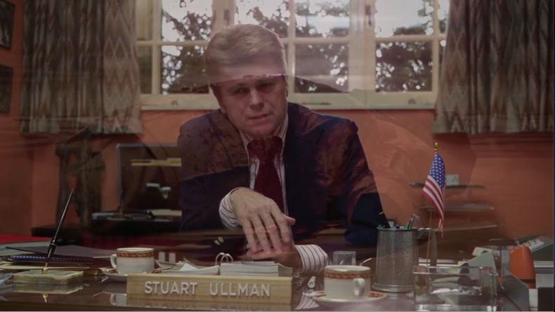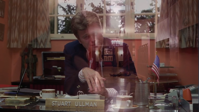 - Right before the first “Bang! Bang! Maxwell’s Silver Hammer came down/on her head!” – We see Jack’s axe handle flash across the bottom right of the screen here. But more importantly, in Ullman’s silver mug, sitting on the desk to the right of him, there’s a little axe-or-golf-club-shaped pen sticking out. A regular old silver hammer, as one tends to keep in their pen mug.