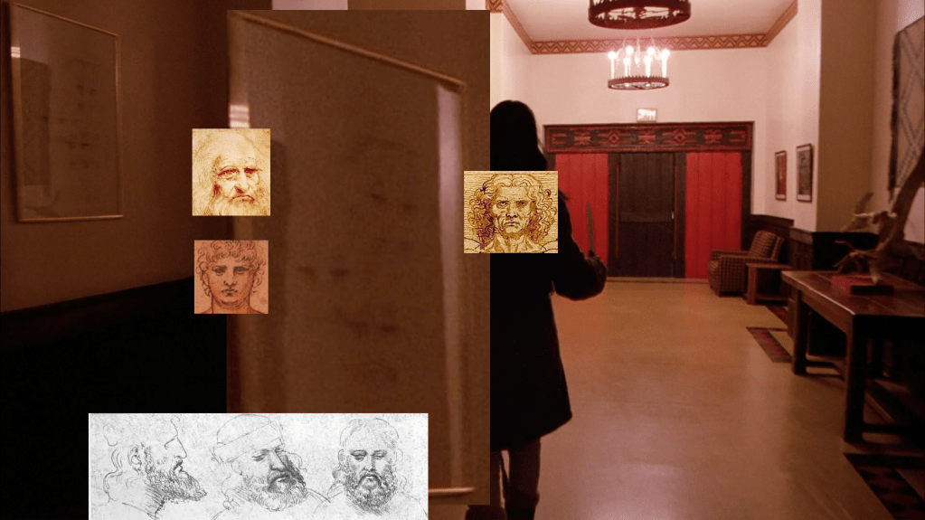 And I think it’s likely that the two sketch pieces in the hall are by the same artist, if not closely related ones. And da Vinci did have an affinity for monster sketching.