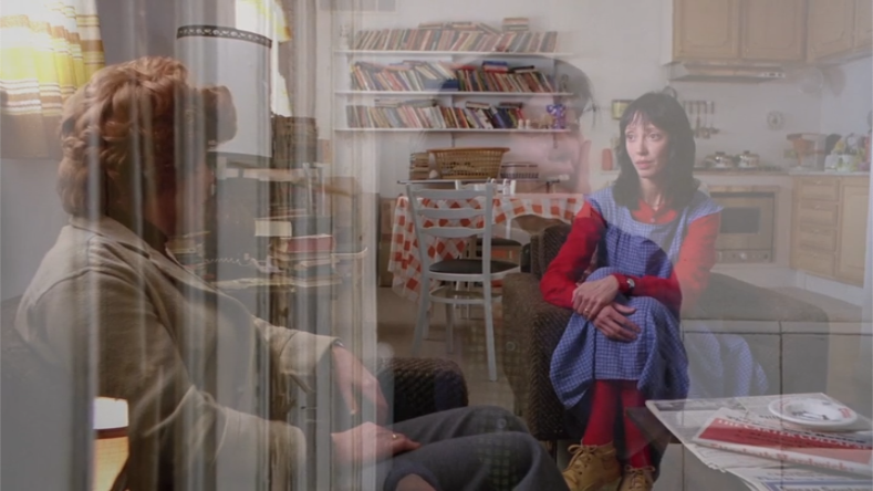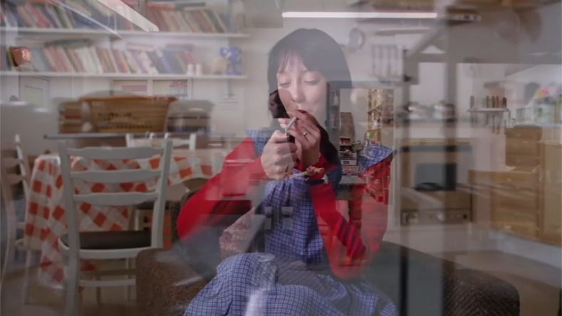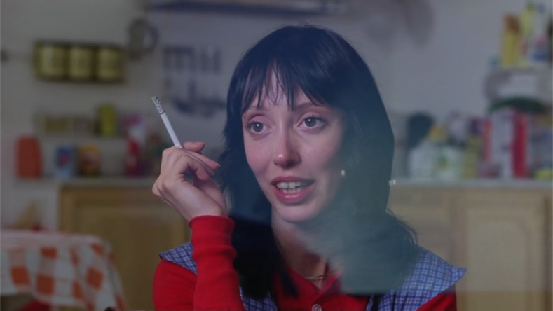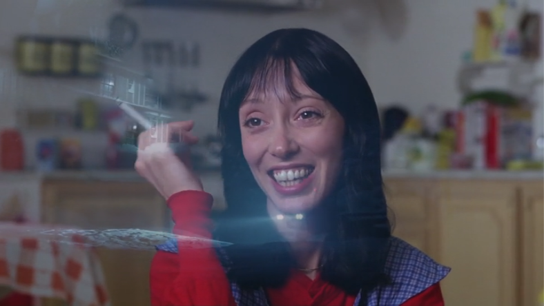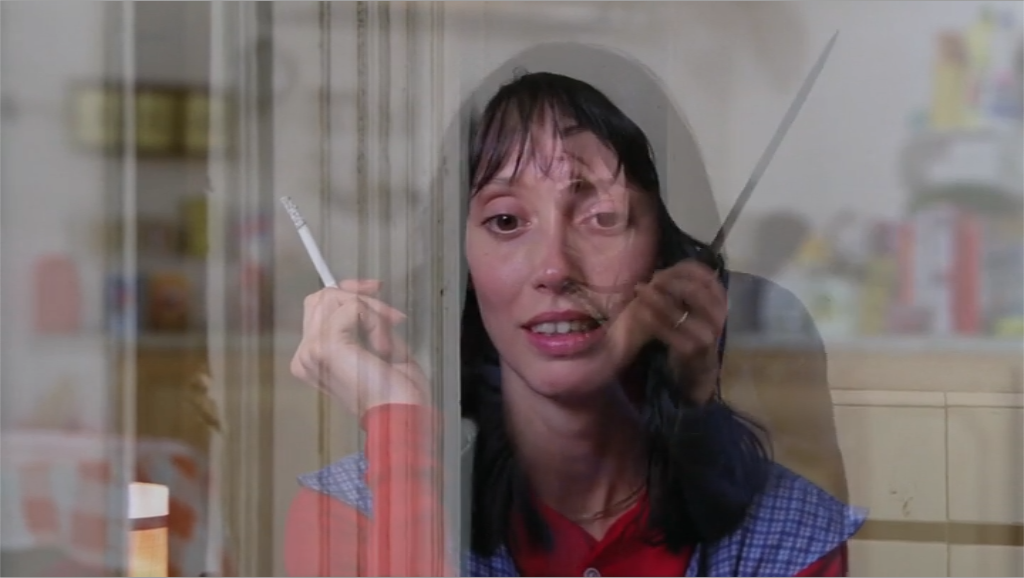 - “Under the sea” – when we hear this, mirror world goes to a shot of Hallorann entering the Overlook, which is very blue. Wendy’s face and the living room/kitchen becomes rather blue as a result. The next time we hear this phrase, the same thing happens. We get a big shot of the Overlook that turns Wendy’s face blue.