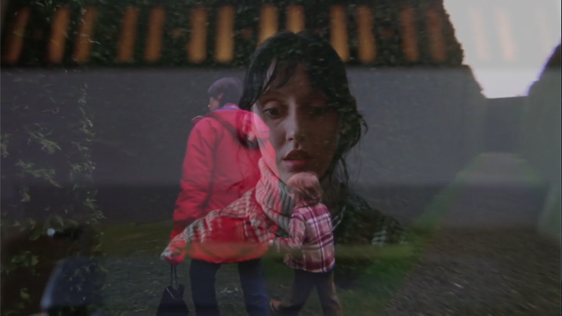 - “Get a dose of her in jackboots and kilts” – Wendy never wears actual jackboots, but when she goes to visit Jack at the typewriter in a little bit (standing almost where backward Wendy is standing here), we’ll see her wearing prominent red galoshes similar in tone to the red coat she’s wearing here (see below). And of course, kilts tend to be plaid/tartan, which is what Danny’s wearing. Jackboots are also associated with fascism and nazism. Shelley Duvall happens to be mostly half Scots-Irish, half German, so those references couldn’t be more astute, in the sense that they capture the spirit of Wendy’s later attire.