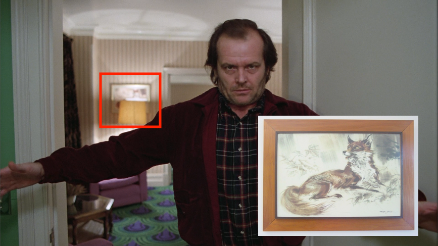“Touch one hair on his goddamn little head. I love the little son of a bitch!” Jack calls Wendy a bitch twice. A bitch is a word for a female dog, and a fox is a canine. The alert fox is probably reflective of the 237 ghost.