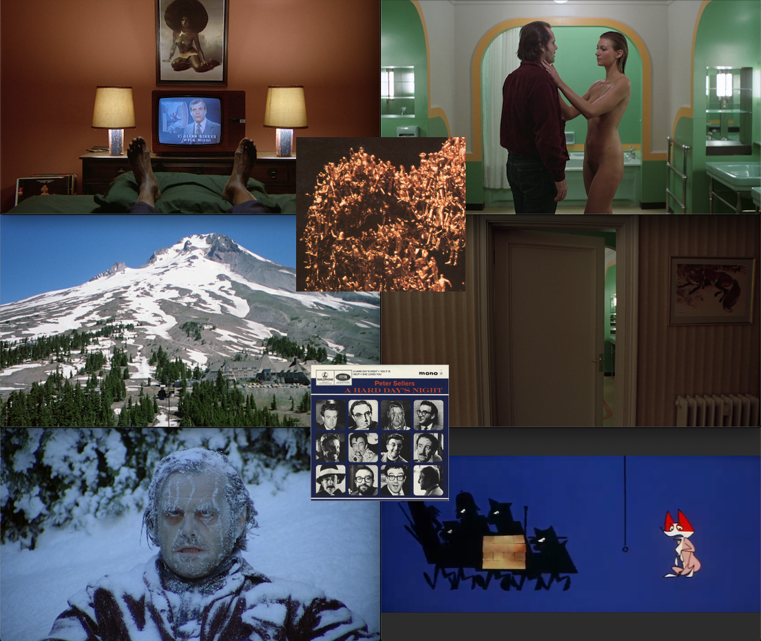 I suppose I should note here as well that Sellers made a Beatles tribute album (released between 1981-83, where he sings four of their songs as Dr. Strangelove) fashioned after Hard Day’s Night. The songs, which include Help!, all have a kind of poetic application to The Shining’s content. Oh, also, Sellers’ final major release, Being There, more or less opens with Strauss’ Thus Sprach Zarathustra, reimagined by Eumir Deodato as the far jazzier Also Sprach Zarathustra. It also contains a Cheech and Chong song featuring George Harrison.