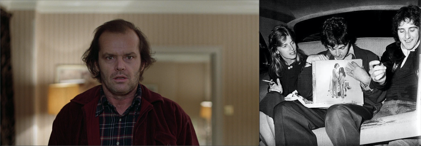 As to references to Sellers within The Shining, it’s hard to say if there’s many direct references to Sellers body of work (he made a tonne of comedies I haven’t seen), but we’ve got (potentially) Octopus’s Garden (written on his yacht by friend Ringo–who you can see jamming with Sellers below), definitely Commoners Crown, and then there’s two paintings of foxes not long after, right outside the Demon Lover bathroom (Demon Lover is a song on Commoners Crown), and the only music Sellers recorded for film was for a film he starred in called After the Fox, which he recorded with The Hollies. Is it possible that Jack sleeping on the Holly-brand salt bags in the food storage is a wink at this? He has, after all, had a hard day’s night chasing after the fox.