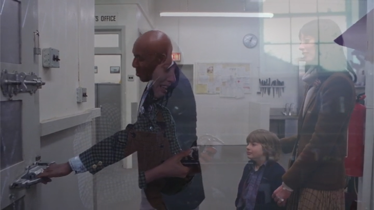 - When Dick opens the door, his dialogue is “Now, this is the storeroom.” There’s a bit of trivia about Scatman Crothers being terrible at remembering his dialogue, and every take needing numerous retakes, some over a 100 times. As he says “storeroom” there’s a loud clangour of the door handle unbolting, or something, and the word comes out like “store-re-room”. It’s difficult to make out, but when I first noticed this, and searched my memory of this scene, I realized I would’ve made the same sound if I’d been impersonating him. Unfortunately, you’ll have to find and watch your own copy to hear what I mean. But on closer inspection, I realized what it sounded more like was “storyroom”. So this impossible, inverting room is like our film’s story. And every scene in or near it (with two brief exceptions, equidistant from it) happens in one big blob of time: 10:30. And on this side of the movie, it all starts at the exact middle of Abbey Road. And on the other side of the movie, it (obviously) ends at the exact middle of Abbey Road. Pretty cool, eh?