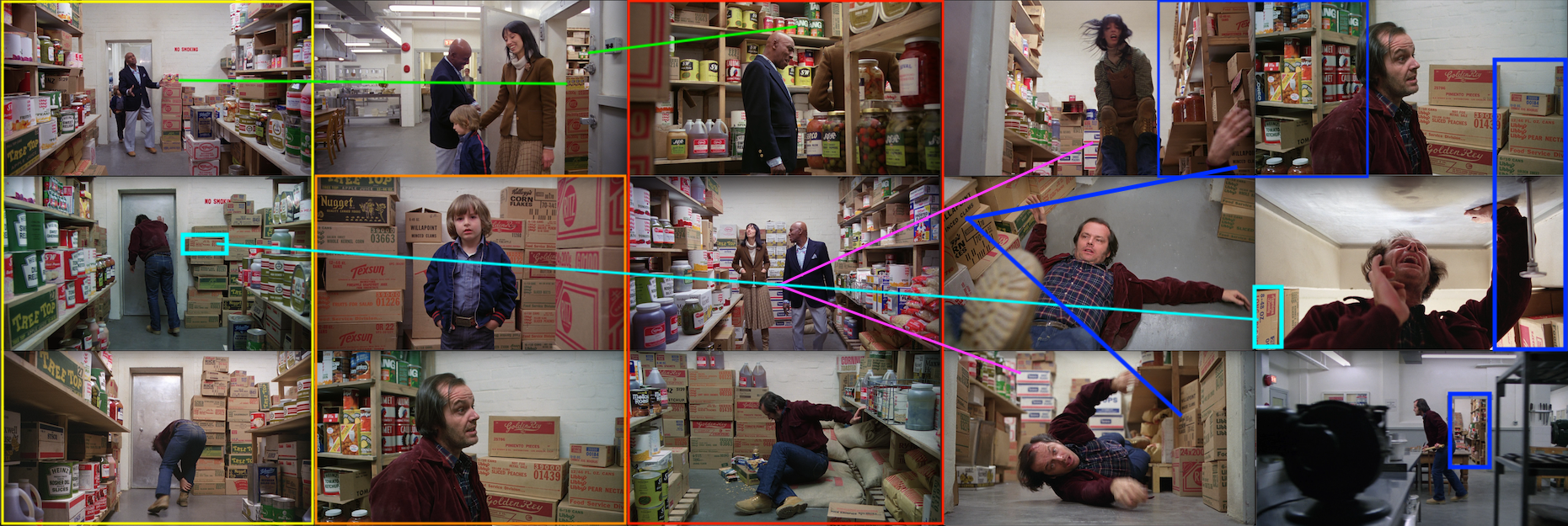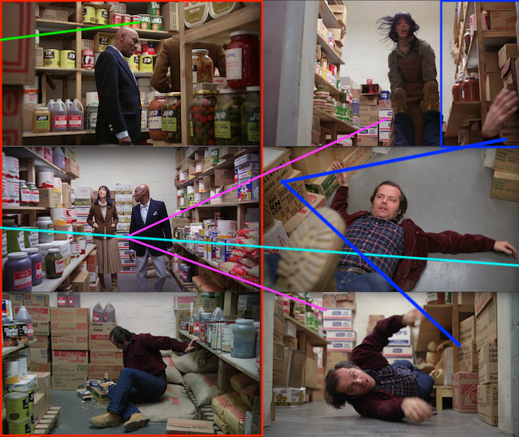 - First off, this is also the exact second that backward Jack appears on screen, replacing Hallorann’s snowcat. Second, where is Jack? The storeroom. And what’s so crazy about the storeroom…?