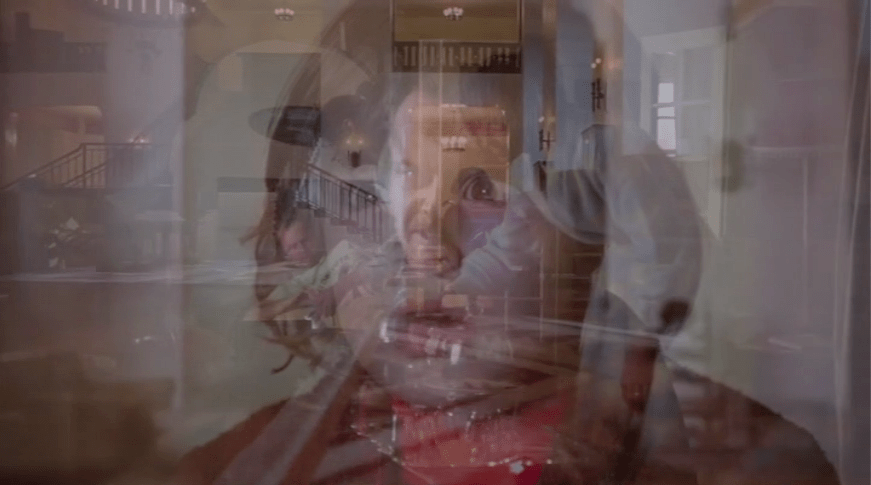 - Accident begins very appropriately with a backwards vision for Danny of the bloodfall and the REDRUM. There’s also this cool moment where Danny’s giant face appears just as first lesson triking Danny would be passing between the spot where Jack and Wendy and arguing in the same room 14 days later. Remember, the song is about a horrific accident that killed the driver, so Danny having this expression while his earlier self was triking is pretty apt. Also, balls-tipping Danny is staring at (at least, in the direction of) a TV screen that might still be showing Roadrunner cartoons, and while Roadrunner never gets caught, his mom might get caught, and Tony is just flashing bloody REDRUMs at him to console him about this. So it’s neat to think that Kubrick was making a comment about the people who made One By One, and how children might see it and become traumatized by the vision of a real man actually burning to death (the Accident accident is much less graphic than the Black Flame one, but still).