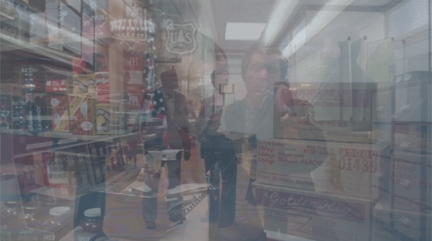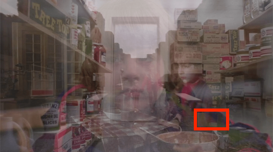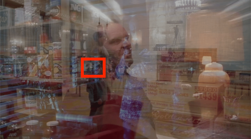 - The closest thing to Jack ripping out a plug that overlays with Hallorann’s arrival is in this moment, where the tendrils of the last plug overlay with Dick’s head and torso, which is pretty sweet. Also, note how Dick is walking up through the Calumet cans. Also, note how Watson is just about to cross in front of Dick, as if his heart’s being ripped out too.