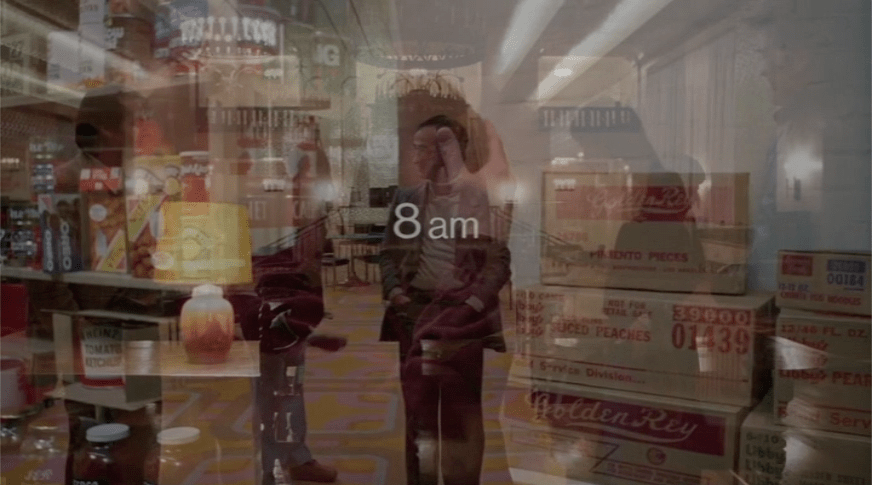- But this also means that within 73 seconds (23:50-24:40-25:03) we’ve had the placards for SATURDAY, THURSDAY and 8am, so this shot of pantry Jack grabbing his head as if reacting to the chaos of time changes feels apt.