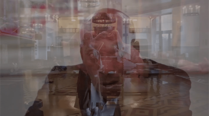 - Actually, aside from everything else we could say about this moment, the most important thing to point out here is that this is the moment the album will end, on the other side of the midpoint of the Twice-Folded Shining. When we reach that midpoint, there won’t be much point in doing the kind of analysis I’ve been doing, where I’m looking at the subtext that’s going along with all the synchronicity in the music. Or, at least, there won’t be as much point, because we’ll have covered it already. So, here we have Wendy and Danny finding the “Dead end”, Dick saying, “Nah, I ain’t scared a nuthin here”, Wendy finding the All Work papers, and a half-dead Jack laying ruined at the bottom of the stairs. This is the final moment of The Rum and the Red, a narrative exercise that began with Hallorann’s Florida-based shine vision stretching out in opposite directions while Jack’s drive to the hotel and photo Jack’s photo imprisonment began their runs for opposite ends. That side essentially started with Danny shining Dick 237, and this side essentially starts with Danny asking about the room. That side featured a kind of dead Jack, and this side features an almost dead Jack. That side featured a 110-second scene with Dick split perfectly in two, and this scene is 2:50 over and has 2:20 to go. That side had Dick watching the news, and this side ends with Dick sitting in the place where Wendy watches the news. That side featured Jack driving up, and this side features Danny’s only trike-less lesson. That side featured Jack frozen in a piece of art, just like he always wanted, and here Wendy’s finding the art her husband hoped would immortalize him. I guess what I’m saying is…could it be folded a third time? Is this movie like some kind of endless origami, hall of mirrors, echo chamber? Well, if so, you wouldn’t make the fold here, you’d make it at a much more interesting moment, but…well, we’ll get there shortly.