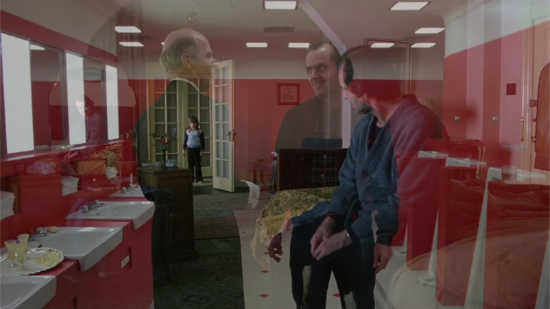 - “She came in through the bathroom window” – Grady assuring Jack that his little girls are “around somewhere” as they stand in an impossible bathroom (in case you forgot, this bathroom should extend back into the area occupied by the Gold Room, by the context clues we get when Jack and Grady enter).