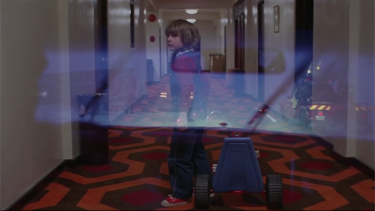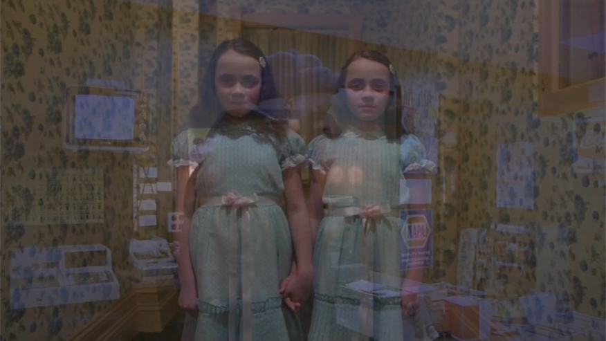 - On that note: recall that the backward mother and child here are both carrying cameras, and Tony/Danny is also being re-shown the same Roadrunner cartoon as he saw in Boulder. So the idea of being shown art, and of creating art as a result of seeing the world, are both being tied to this moment. By contrast, the shots in round 2 of this song feature only backward Jack and Grady in the artless Gold Room bathroom, and shots of Jack and Danny in Suite 3, carefully framed to exclude any of the surrounding art (for the most part).