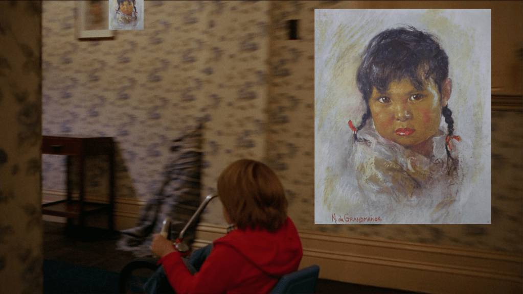 Also, I think it’s interesting that Kubrick would choose a de Grandmaison piece where the child has pigtails, as so many of the Oxborough ones do, which could be to further the Wizard of Oz subtext.