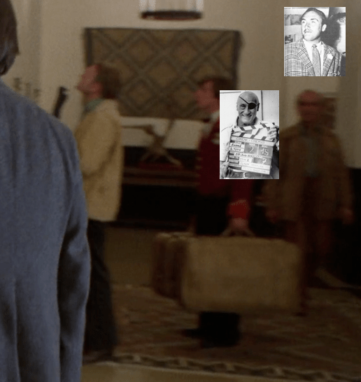 Basically, my original theory was (and basically still is) that GREAT PARTY ghost is the actual Charles Grady. He appears right as Ullman is saying, “My predecessor in this job (close up of “Great party, isn’t it?”), hired a man by the name of Charles Grady (wide shot as seen below) as the winter caretaker…”
