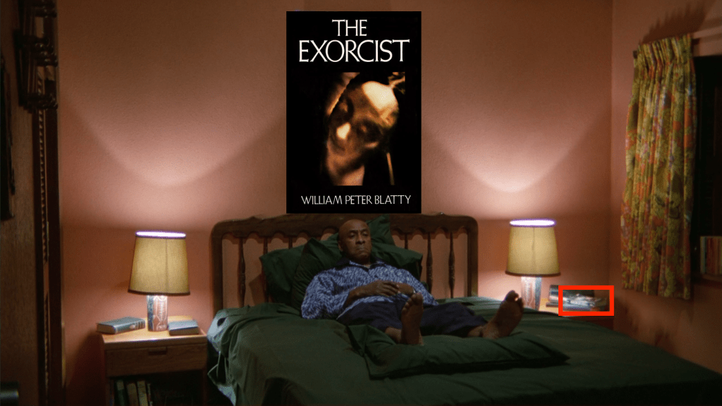 It almost seems silly to offer brief commentary on one of the more written-about films of all time, and certainly one of the most impactful and widely-admired horror films of all time… from within my own expansive analysis on one of the other most widely theorized horror films. But so too does it seem odd that Kubrick would include such a brief nod to a film he mentions immediately after saying Rosemary’s Baby was “one of the best of the [horror] genre”. I know we’ve got the complete Shakespeare in this thing, but Shakespeare is in the past, representing a much more ancient and established greatness. This is such a heavy nod to one of Kubrick’s biggest competitors in the run for greatest horror film of all time, and a competitor that was not long in the memory of anyone alive during production (which began 5 years after The Exorcist was in theatres). Both stories involve a child who seems to be possessed by a force of uncertain allegiance and intention, and both stories involve the noble sacrifice of an elder figure who goes through considerable doubt despite their apparent faith in supernatural forces. A sacrifice that successfully protects the endangered youth. So there’s also the way that the nod almost doesn’t need to be made – the similarities aren’t subtle.