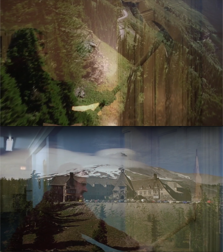 Here’s another cool stylistic connection between Sections I and VI: forward Section I’s Fibonacci lines all involve the same rough view of the same mountain range, which reappears three times in three different shots that all mask this repetition, and Section VI’s backwards action features Jack beginning a new phase in his mission to slaughter his family (this is even more interesting when we consider that these mountains include Four Bears (left) and Goat (right) Mountains, and Wild Goose Island; Wendy is often connected to bears, Jack to horned beasts, and Danny to winged creatures).