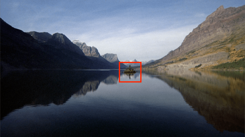 There is something of a profound coincidence (if that’s all it is), in the way the painting giving Wendy the black eye features a tall mountain across a lake, which, in the final frame of the overlay, her eye is at the bottom of.