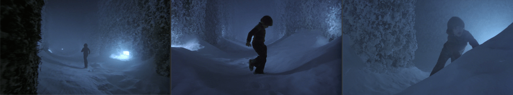 And before we move past the Beatles connection, side 2 of the White Album also features the Ringo Starr track, Don’t Pass Me By. In the 3rd lesson, Danny passes room 237 once, only to notice it on the return loop. In the 2nd escape, Danny enters the heart of the maze, where he won’t pass by, but will perform the backwards disco that saves his life. And again, it’s because he thinks Wendy (Ringo) has rolled the pink ball that he enters room 237 (where he might later shine Jack doing his backward walk away from the ghost), and it’s because Wendy showed him the middle of the maze that he knows how to get there, and perhaps it’s from the way she walks him up and down the middle that he gets the idea to walk it backwards. This would be another way of looking at the Music for Strings, Percussion and Celesta connection: it’s about Danny’s relationship to his parents (it plays again during his big confrontation with zombie Jack). It plays once when Wendy’s being most helpful, once near the room where he’ll think Wendy is (prompting Jack to have his own experience there), and once over Jack’s least helpful non-murderous interaction with his son.