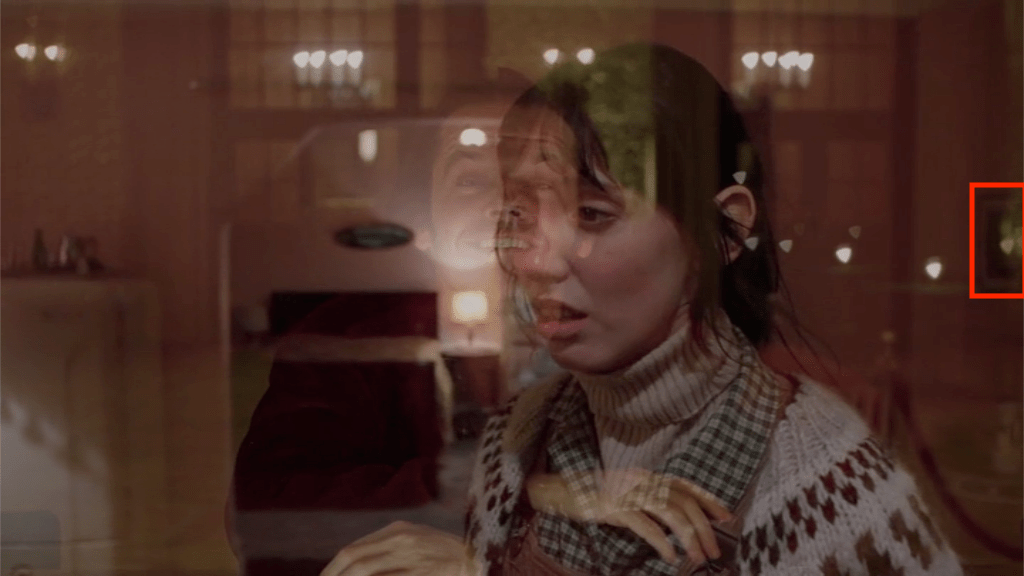 Oh, and if I am right about the 237 Vesuvius, the mirrorform for that moment shows that piece floating inside Jack’s head while Wendy tells the tale about a crazy woman who tried to strangle Danny, and while the still life with the white vase floats inside Wendy’s head. So, these two mirrorform touches would seem to suggest Vesuvius equals Jack.