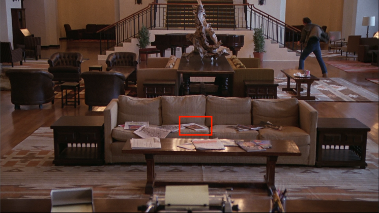 …then in the Colorado Lounge mixed in with the piles of mags and papers while Jack’s hurling the ball, and finally (that I know of) in Suite 3 while Wendy’s pacing and fretting.