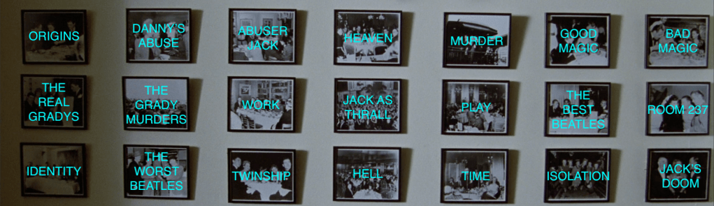 And just as “room 237” is the last new photo to be seen, “Bad Beatles”, along with “Danny’s trauma” (2) and “heaven” (4) are the three photos that are the first to be seen, totalling 22 points. That last “room 237” (14), is seen on a wall with “abuser Jack” (3) and “murder” (5), also totalling 22 points.