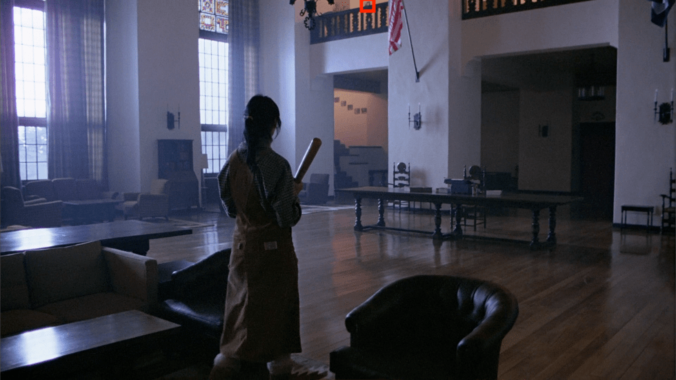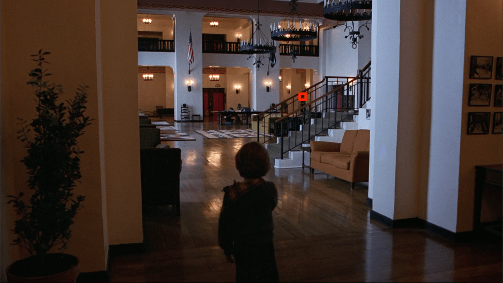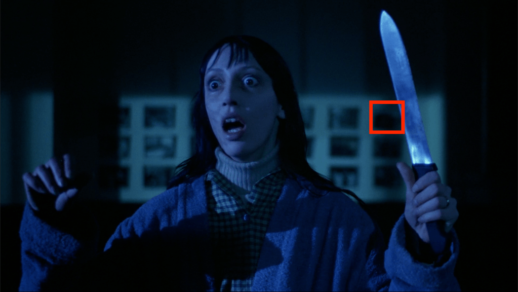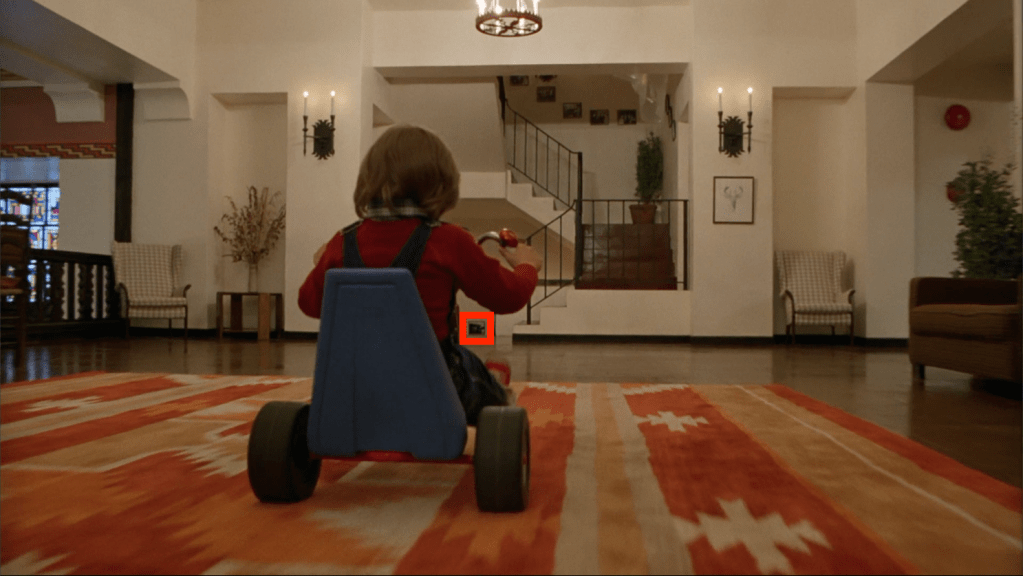 …and very obscurely in his first shot after CLOSING DAY. I like this detail because what it means is that, even though Wendy’s first shot inside the hotel technically doesn’t include this eye of judgment in the shot…